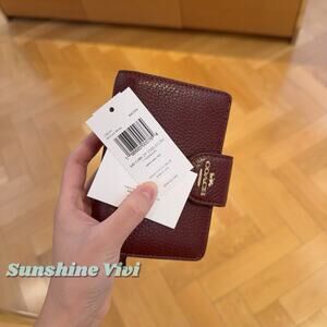 NWT Coach Medium Corner Zip Wallet CBO41 Pebble Leather Dark Wine