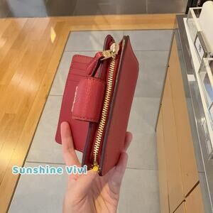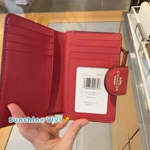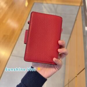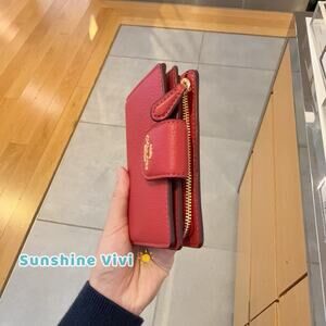 NWT Coach Medium Corner Zip Wallet CBO41 Pebble Leather Gold/True Red