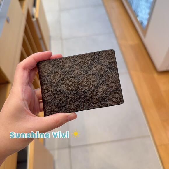 NWT Coach Men's Walnut /Black Compact Billfold Coated Canvas Wallet CW368