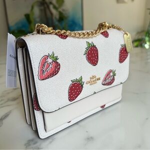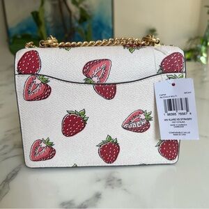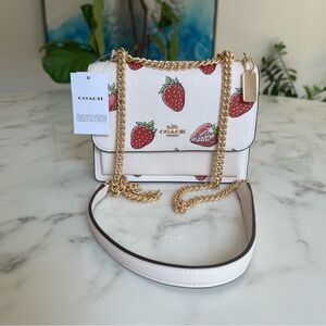 NWT Coach Mini Klare Crossbody Bag With Strawberry Print CAP94 Gold Chalk Multi