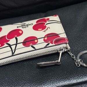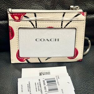 NWT Coach Mini Skinny Id Case With Cherry Print CZ463 Chalk multi