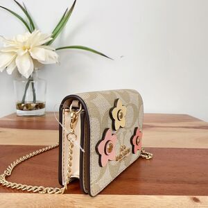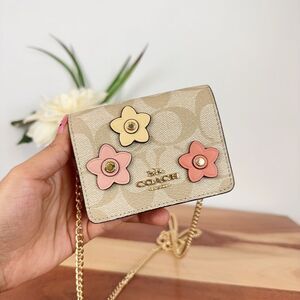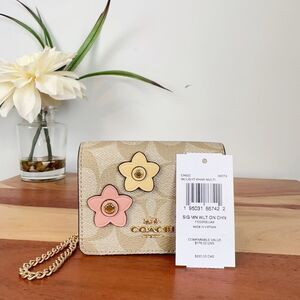 NWT Coach Mini Wallet On A Chain In Signature Canvas With Floral Applique