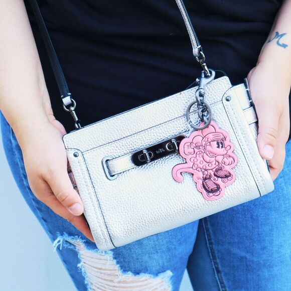 NWT Coach Minnie Mouse Rollerskate Keyfob Key Chain Bag Charm in Pink