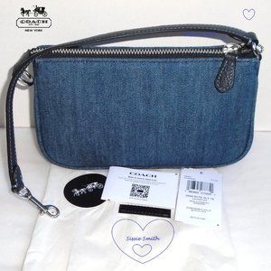 • NWT Coach Zip Card Case in Quilted Denim & Smooth Leather