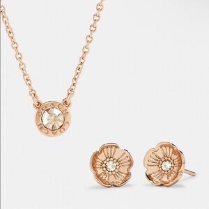 NWT Coach | Open Circle Necklace and Tea Rose Stud Set