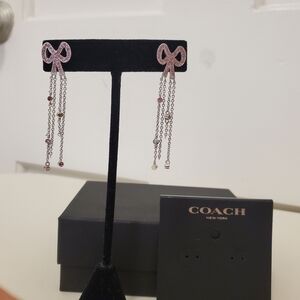 NWT Coach Pave Bow Swarovski Crystal Fringe Bow Earrings