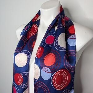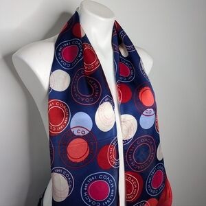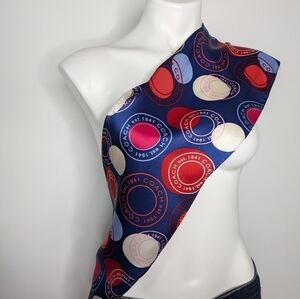 NWT Coach Polka Dot red white blue patriotic oblong silk scarf purse tie.