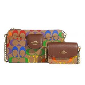 NWT Coach Pride Poppy Crossbody With Card Case In Rainbow Signature Canvas C4697