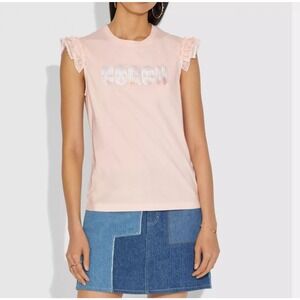 This sleeveless cotton T-shirt features our Coach retro graphic front and center. Ruffled cap sleeves add an unexpected feminine touch to the sporty style.