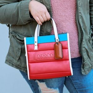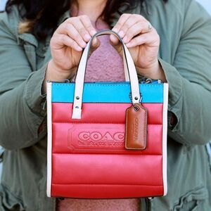 NWT Coach Quilted Leather Field 22 Tote Candy Apple Multi