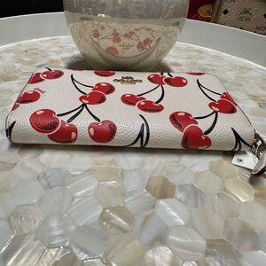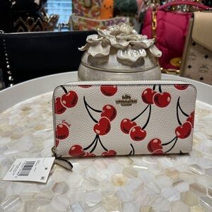 NWT Coach Retail Cherry Large Accordion Zip Wallet Gorgeous!