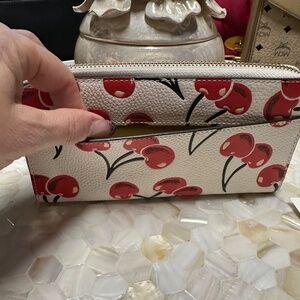 This authentic Cherry Accordion zip wallet is beautiful. It is a retail piece that the no longer make. I just never reached for it in my closet. What a beautiful wallet to go with any handbag for an accent.