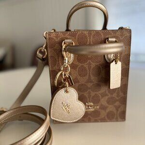 Signature Coach Mini Tote LOGO Bag w/Heart Mirror Charm - NWOT - Crossbody or handle held.