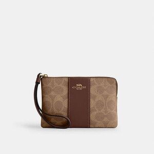 Our Corner Zip Wristlet is an everyday essential that won’t weigh you down. Crafted of Signature coated canvas and smooth leather, this small wristlet wallet is compact yet functional, with space for your keys, cards and even an iPhone (up to a 15 Pro Max). This canvas wristlet in Signature canvas features a wrist strap for ease and a zip-top closure to secure your items. To keep your cards handy on the go, organize them in the convenient built-in slots.