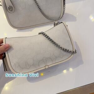 NWT Coach Signature Jacquard Swinger 20 Silver/Cloud Chalk