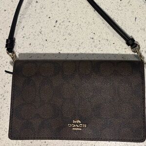 NWT Coach Signature Leather Crossbody – Brown/Black Clutch