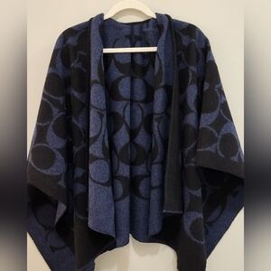 Stylish Coach poncho with signature pattern. Elegant and versatile.