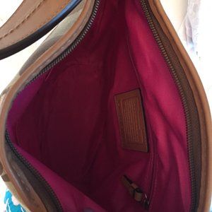 NWT Coach Signature Rugby Duffle with pink stripe in khaki with tan leather adjustable