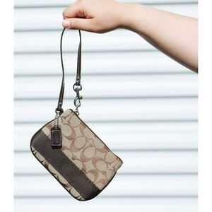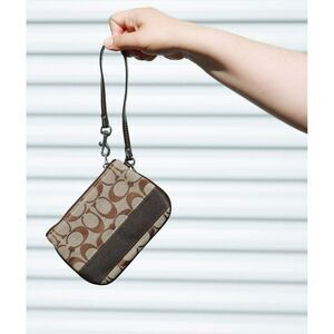 NWT Coach Signature Stripe Card Phone Wallet Khaki Mahogany