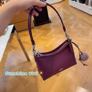 NWT Coach Small Laurel Shoulder Bag with Flower Charm CCF15 Plum/JasmiSi /Silver
