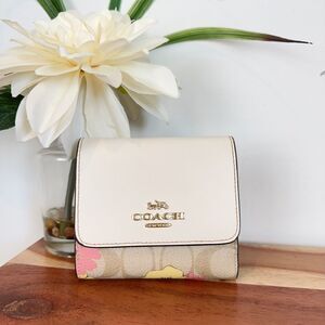 NWT Coach Small Trifold Wallet In Signature Canvas With Floral Cluster Print
