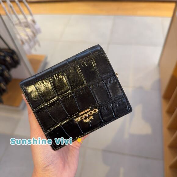 NWT Coach Snap Wallet In Crocodile-embossed leather C6092 Gold/Black