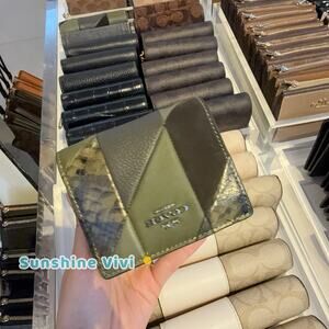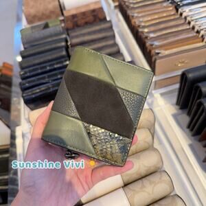 NWT Coach Snap Wallet With Patchwork And Snake Print CCL77 Gunmetal/Olive Multi