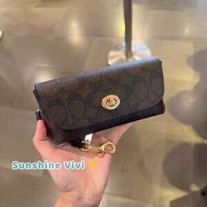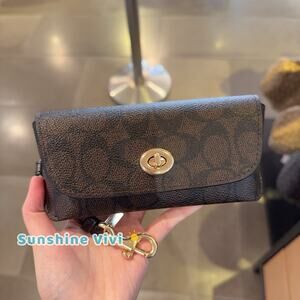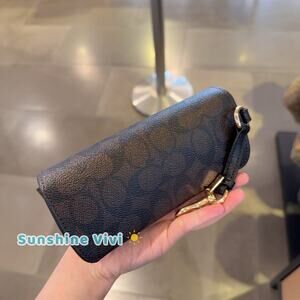 NWT Coach Sunglass Case CZ207 Signature Canvas & Smooth Leather WALNUT/BLACK
