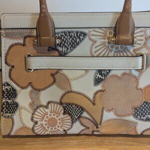 NWT Coach Swagger Medium Satchel with Patchwork Tea Rose Floral Applique Beige