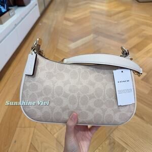 NWT Coach Teri Shoulder Bag In Signature Canvas CV933 Gold/Sand/Chalk