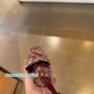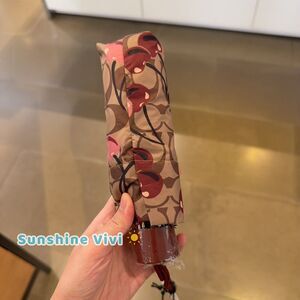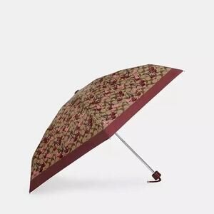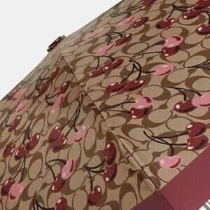 NWT Coach UV Protection Mini Umbrella in Signature Cherry Print Gold/Khaki cz929