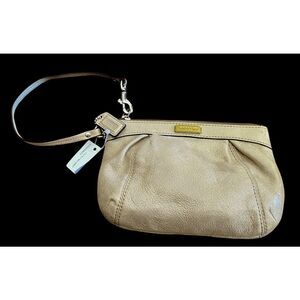 NWT Coach Vintage Champagne Gold Sparkle Leather Wristlet Pleated Metallic