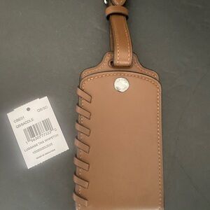 Coach Stylish tan leather luggage tag, perfect for travel. Durable and elegant design.