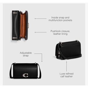 NWT! Coach Women's Luxe Refined Black Calf Leather Bandit Crossbody