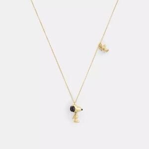 NWT Coach X Peanuts Snoopy And Woodstock Pendant Necklace CCA48 Gold /Black