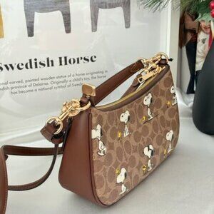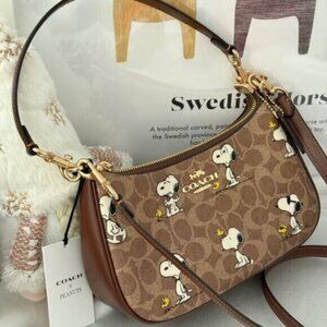 NWT Coach X Peanuts Teri Shoulder Bag In Signature Canvas With Snoopy Prin