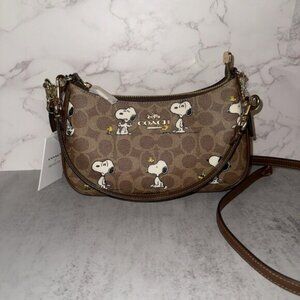 NWT Coach X Peanuts Teri Shoulder Bag In Signature Canvas With Snoopy Print