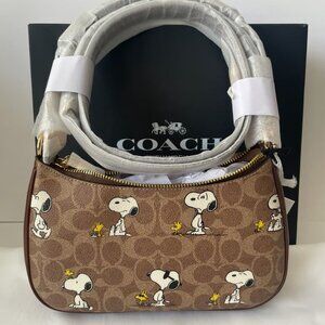 NWT Coach X Peanuts Teri Shoulder Bag In Signature Canvas With Snoopy Print
