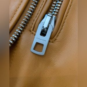 NWT Coach, leather moto jacket, butterscotch, size 2