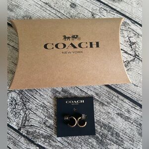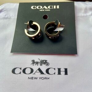 NWT! Beautiful Coach signature hoop - huggie earrings in gold and black with “C” logos printed in white. Authentic Coach brand.