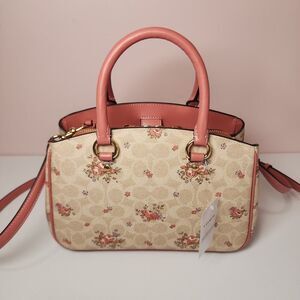 NWT Coach CAL35 Savannah Small Carryall Bag With Floral Print Gold/Sand