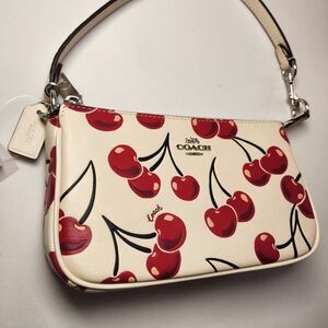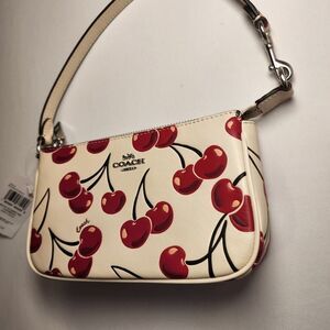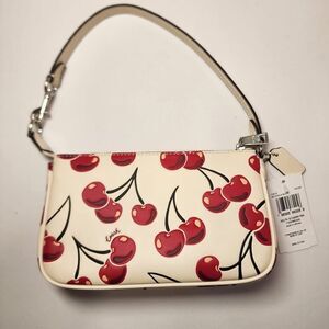NWT Coach CZ012 Nolita 19 With Cherry Print Wristlet/Handbag In Leather Chalk