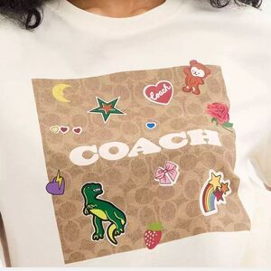 NWT Coach Signature Square T Shirt In Organic Cotton With Sticker Patches size S