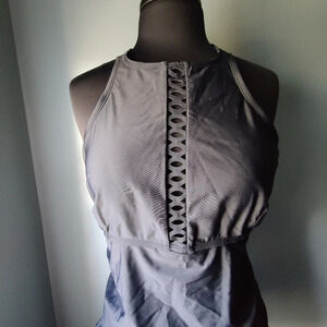 *NWT* Coastal Blue High Neck Lattice Cut out Front Tankini Top