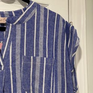 NWT Coastal Comfort Size XXL Blue Stripe Linen Blend Split Neck Short Sleeve Top