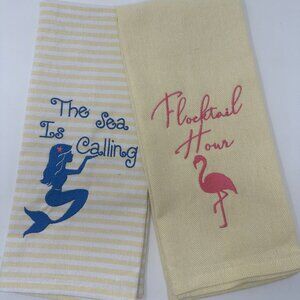 NWT Coastal Dish Towels Set of 2 Mermaid Flamingo The Sea is Calling Hand Towel