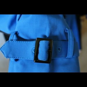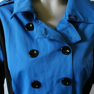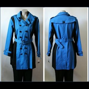 NWT Cobalt Blue and Black Colorblock jacket sz XL. Fully lined features button closure with self tie belt two front side pockets.
