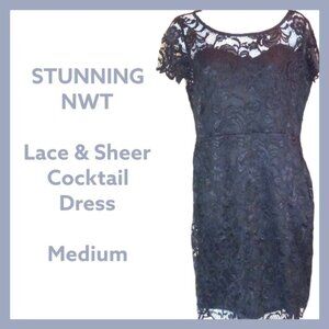 🏖️ NWT Cocktail Black Lace Bodycon Dress Size Medium
