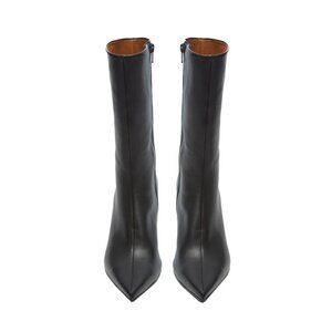 Style: Sophisticated pointed-toe boot with an arched wood heel. The boot's mid-calf shaft height is perfect for skirts or cropped pants without the restrictions of a to-the-knee boot. Its sleek, modern appearance belies its comfort. Inside zip closure. The dressed-up pointed pump features a solid ash wood 65mm (2.5”) heel and leather sole.