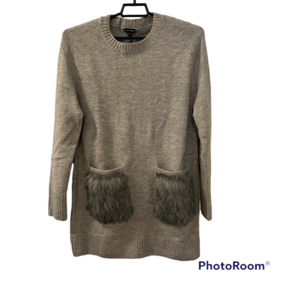 NWT Coco + Carmen Ribbed Hem Faux Fur Pocket Knit Sweater Tunic Top Dress L/XL